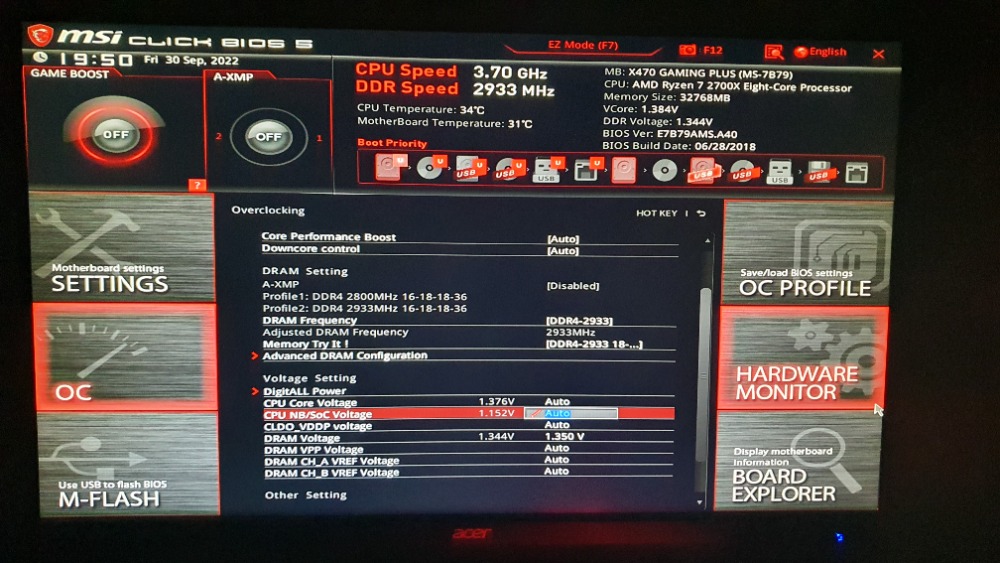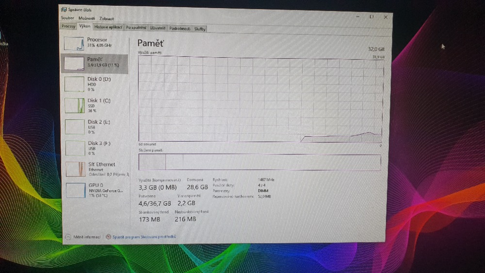 jdu si pro radu. Trápí mne pomalé RAMky. Mám AMD ryzen 7 2700x na MSI 470x gaming plus. Tento procesor by měl podporovat maximální takt RAMek 2933. Měl jsem tam RAM od značky VIPER s max taktem 3200. Podle správce úloh ramky jeli na 1067 nebo tak nějak málo. Zkusil jsem XPM a počítač měl problém se spustit, vypínal a zapínal se pak se chytnul. Sehnal jsem RAMky od značky Corsair které dávají 2933, jako podporuje tento procesor. Podle správce úloh RAMky už jedou trochu rychleji na 1467. Nevím kde je chyba, XPM to nezmění. Zvláštní je když jdu do BIOSu tak mi to píše DDR speed 2933, ale jakmile se normálně pustí PC tak jedou zase na 1467. Děkuji za rady. Přiložím pár screenshotů, bohužel jsem musel zhoršit kvalitu, jinak sem nešli nahrát, snad půjde něco z nich vyčíst :D