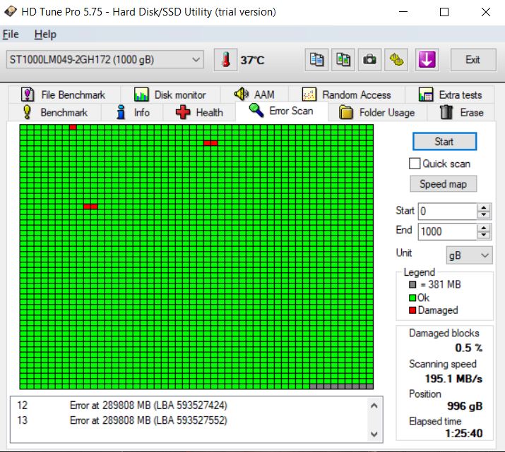 Vlastně jediné, co mě zajímá je, jestli je disk opravitelný, nebo už ho jen max vyndat a zahodit.