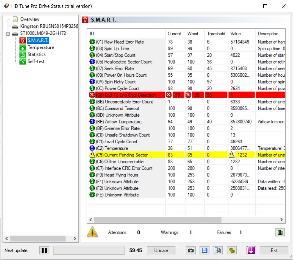 Jednou prý ntb nahlásil, že je třeba tento disk zformátovat a "systém" ho několikrát odpojil ze sata.