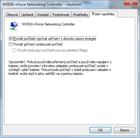 Re: Při vypnutí PC kontrolka síťové karty nebliká, nelze WOL