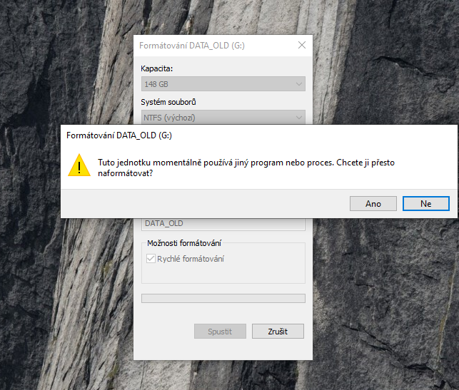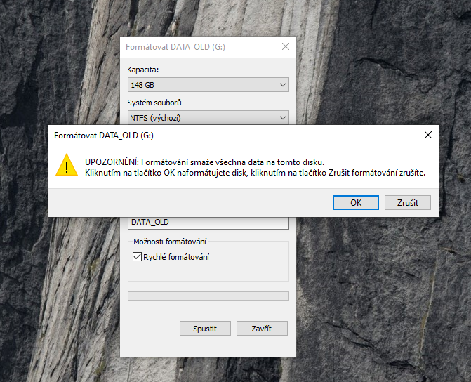 koukněte když ten disk skusím formátovat tak mi to napíše tohle dám ok a pák mi to potom napíše zase tohle a nevím co dál