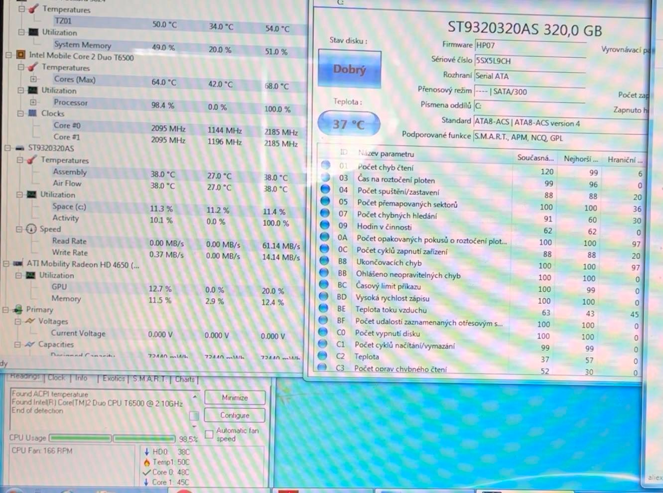 HwMonitor, SpeedFan, CrystalDiskInfo (teplota disku).