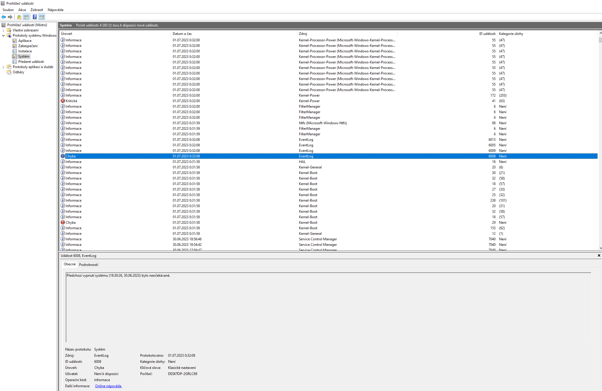 Re: Chyba - Událost 41, Kernel Power