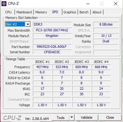 @h-s: Všimni si na CPU-Z SPD, že každý z obsazenych slotů má shodné parametry na JEDEC# 609MHz, CAS =8, atd. Ty si opiš a vyzkoušej vložit do BIOS, OC Tweaker místo AUTO.