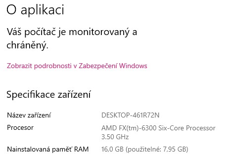 16GB hlásí programy, které si tuto informaci přečtou z tzv. čipu SPD (Vcc, f, CAS, RAS...), který je na každém modulu RAM. Systém Windows si "osahá" a používá skutečně dostupnou paměť. Pokud je nějaká nečistota ve slotu RAM, nebo je modul nedotlačený, mohou být tyto dvě informace rozdílné. Stejný problém může nastat, když je špatný kontakt v patici CPU, nebo je některý vývod CPU utržený (spoje od RAM vedou přímo na CPU).