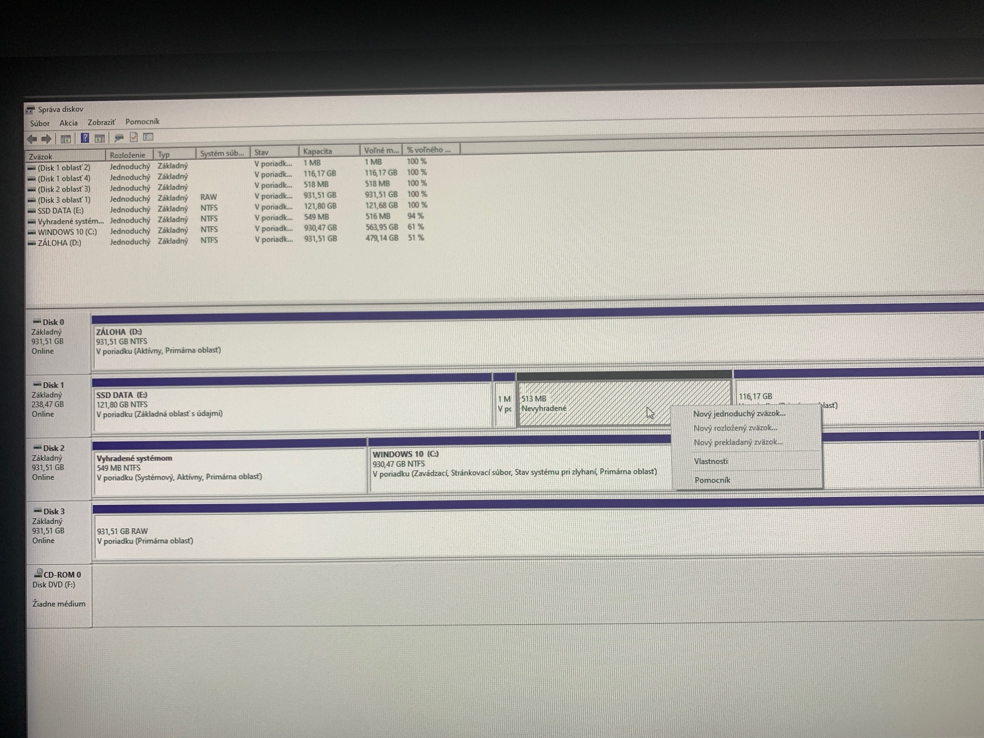 Prikladám fotku, jedná so o disk 2 obladť 3. Ponúka mi vytvoriť len nový jednoduchý zvazok, nič viac.