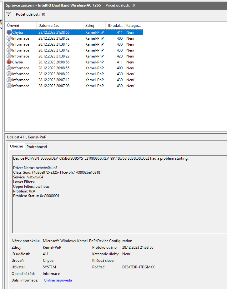 Provedl jsem vse co jsi psal, vse odstraneno, pak restart a ve spravci je vse, tak jak to bylo i s chybou
