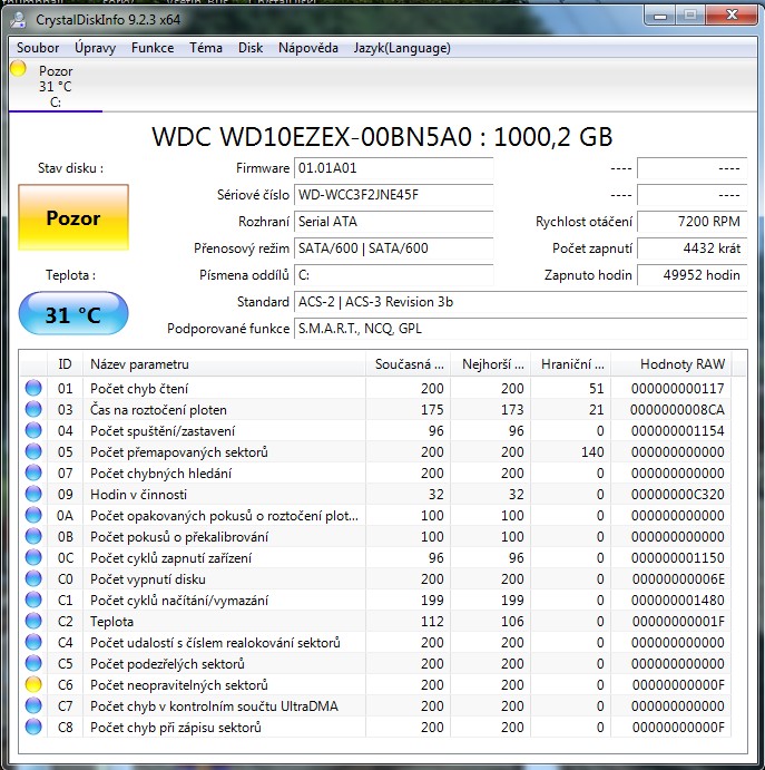 Dej screen s crystaldisku, rovnou tak zjistíme info o jaký disk se jedná když to nejsi schopen dodat ty.