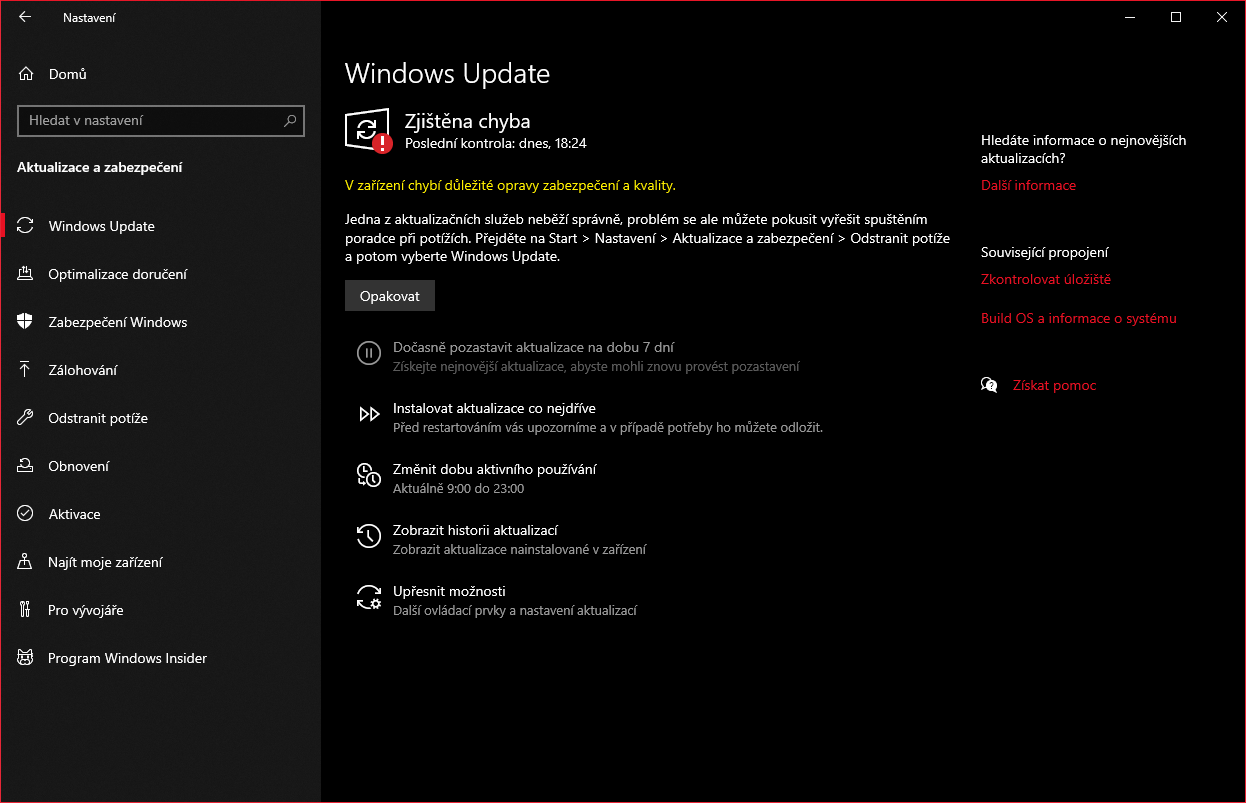 Zkusil jsem spustit aktualizace, ale narazil jsem na problém (viz foto). Při spuštění poradce při potížích Windows updates to nenalezne žádný problém, je možné to nějak opravit? Jedná se o PC syna který tam zřejmě někdy v roce 2020/2021 smazal nějaké soubory, protože měl plný disk, které asi znefunkčnily aktualizace.