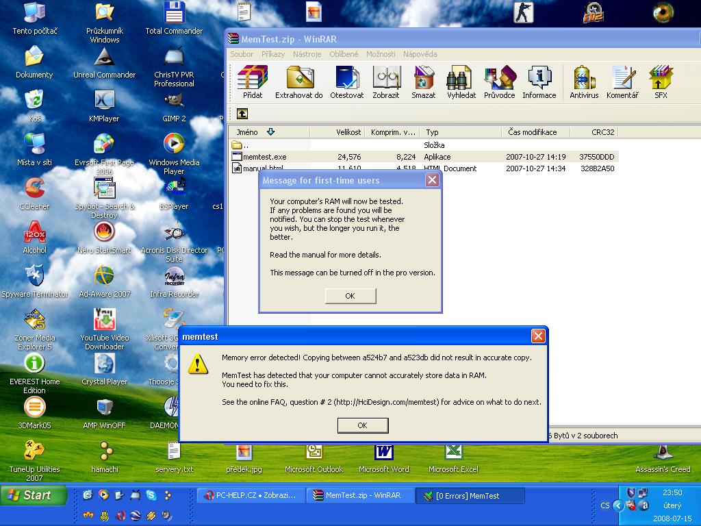 Zdarec dnes jsem si koupil RAM 1x 1 GB čili dohromady mam 2GB DDR2 667MHz jenimže po přidání RAM mi začali padat některé (2) hry Driver paralel lines a Crysis. Proč? Memtest mi to nechce proscanovat