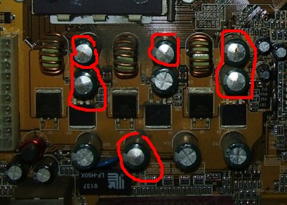 už od pohledu je evidentní že ve zdrojové části desky č.2. jsou vyfouklé kondíky