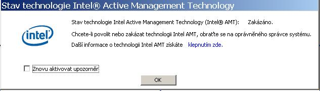 Na hlavním panelu v části u hodin figuruje ikona (přeškrtnutá červeným křížkem viz obr.1) na kterou najedu-li kurzorem má název „Stav Technologie Intel R Active management Technology“ (viz obr.2). Kliknu-li na ni, otevře se panel se stejným názvem (viz obr.3). Jsem Správce systému ale ne natolik zkušený abych věděl co se po mně chce a ještě v angličtině. Domnívám se že jde o něco co souvisí pravděpodobně s procesorem nebo grafickou kartou, ale co? Vlastně oč vůbec jde? Kliknu-li na "Další informace o technologii Intel AMT získáte klepnutím zde" dostanu se na stránku Intel:http://www.intel.com/business/business-pc/index.htm (plné angličtiny).