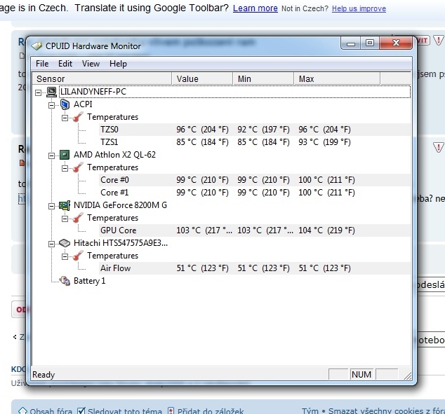 chladící podložka mi bohužel v tomto případě asi nepomůže, už třetí den mi rapidně vzrostla teplota, chlazení jede na maximum a uvolňující se teplo je cítit i přes klávesnici, touchpad, prostě všechno...