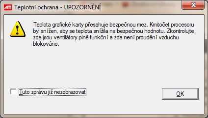 Zdravím, mám grafickou kartu Radeon X1650. Při hraní her (Např. Dota 2) po nějaké době, pokaždé jndy zčerná obrazovka, hra se minimalizuje a nejde se dostat zpátky. Zkoušel jsem nainstalovat novější ovladač.http://support.amd.com/us/gpudownload/w ... iw_xp.aspx První jen samotný ovladač a nepomohlo to. Poté jsem zkusil nainstalovat celý Catalyst Software Suite. Po zapnutí hry začne počítač pípat, jedno pípnutí cca. co 10 sekund. Po minimalizování se objeví hláška viz příloha. Když jí ignoruju počítač se po chvilce sám vypne. Takže co s tím?