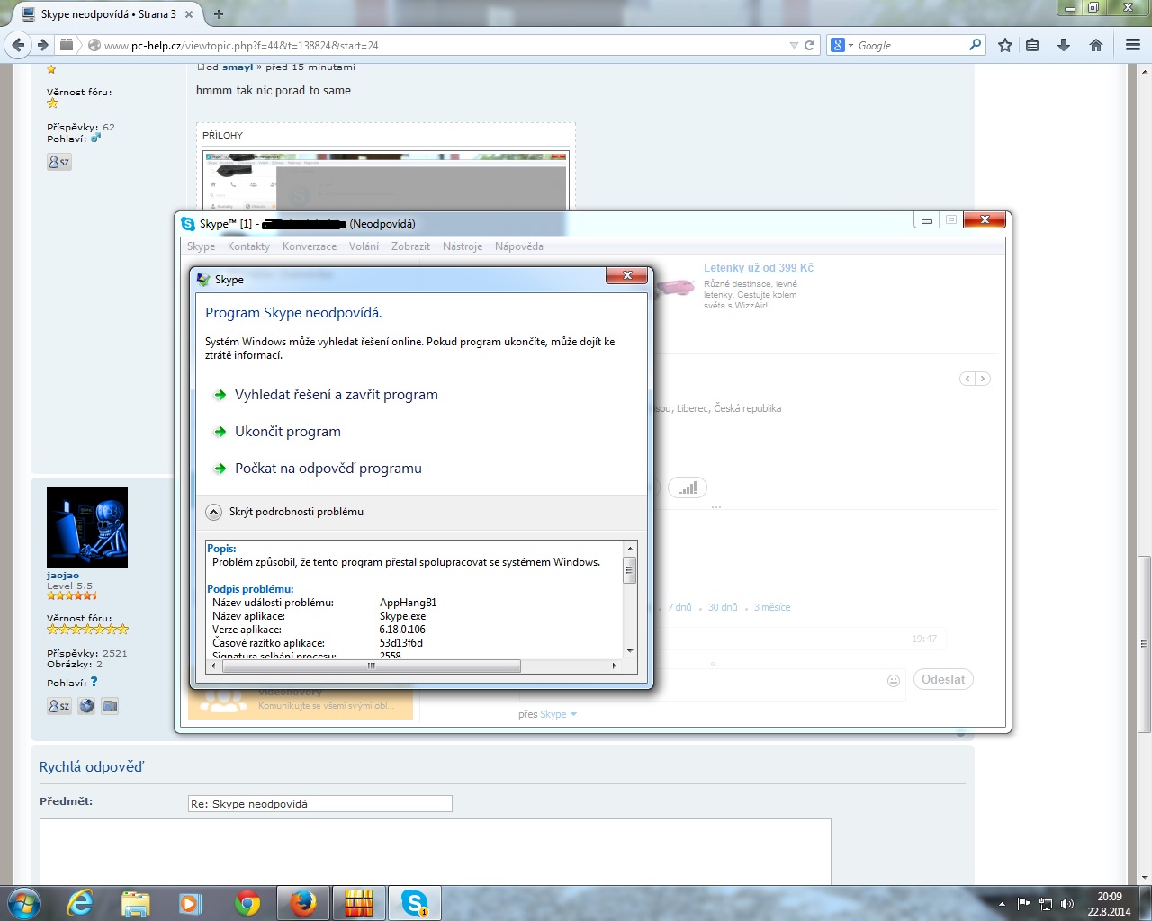 Re: Skype neodpovídá