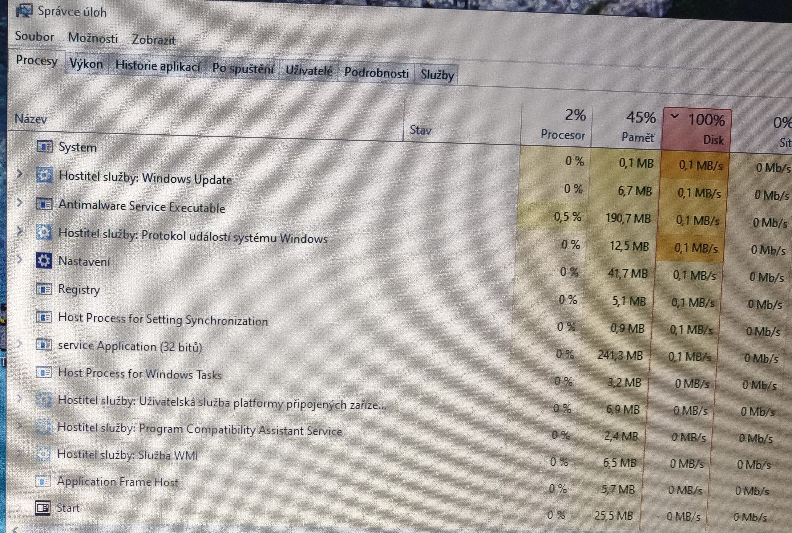 Prosím o kontrolu logu případně radu. předevčírem jsem zapl notebook a asi kolem 15 minut trvalo jen než se načetla přihlašovací obrazovka, dalších půl hodiny než se načetly ikony na ploše, o spuštění nějakého programu ani nemluvně.. v nouzovém režimu ěží normálně. Stihl jsem udělat log hjt. Ve správci zařízení je disk neustále vytížen na 100 procesem system , v podrobnostech je "ntoskrnl.exe" na internetu jsem vyhledal že mám manuálně zkusit zastavit službu windows search, po zastavení se hned zapíná sama a běží ješte k tomu proces "windows module installer worker". Předem děkuji za rady