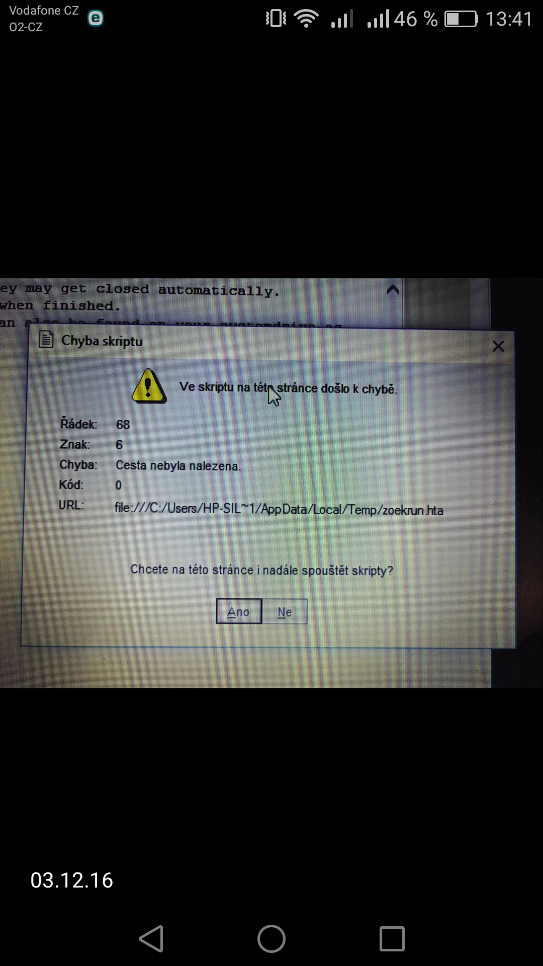 Vim, ale vyskocila na me chybova hlaska potom, co jsem potvrdil ano jsem nechal bezet nb do rana a ani po cca 10 hodinach se nic nedelo, coz jsem nevydrzel a pc restartoval. Opet zkousim znova akorat, jsem dal ne, tak uvidim...