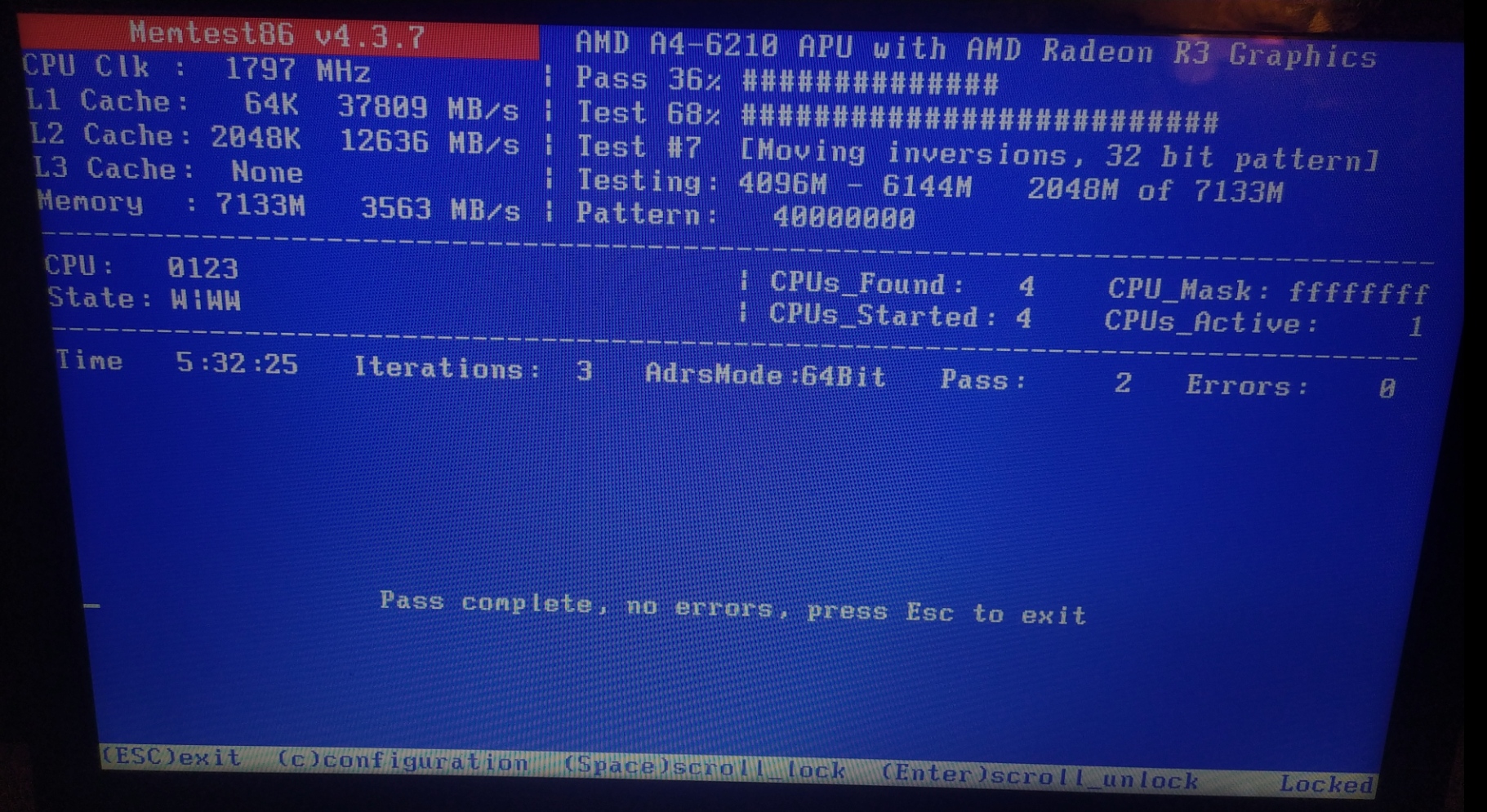 Memtest , vyndej dvě ramky a zkus to znovu. Pak vyndej ty dvě a vlož tam ty druhé.