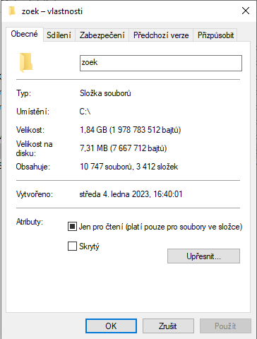 Poslední věc, co s 1,84GB složkou "zoek" hned v C:\zoek, která tam předtím nebyla?