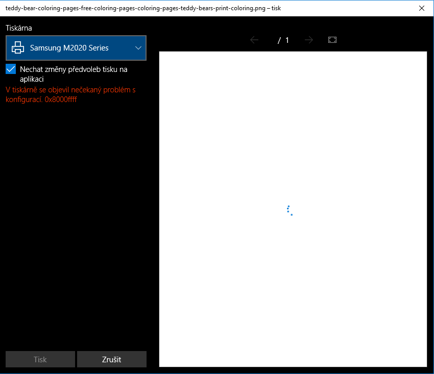 Když už jsem si včera večer myslela, že všechno bude OK, tak né. Přivezla jsem si domů novou laserovou tiskárnu Samsung a nejde mi řádně nainstalovat. Resp. instalace proběhne jakože bez chyby, ale počítač při tisku s tiskárnou nekomunikuje. Hází mi to chybu, kterou je možno vidět na obrázku. :/