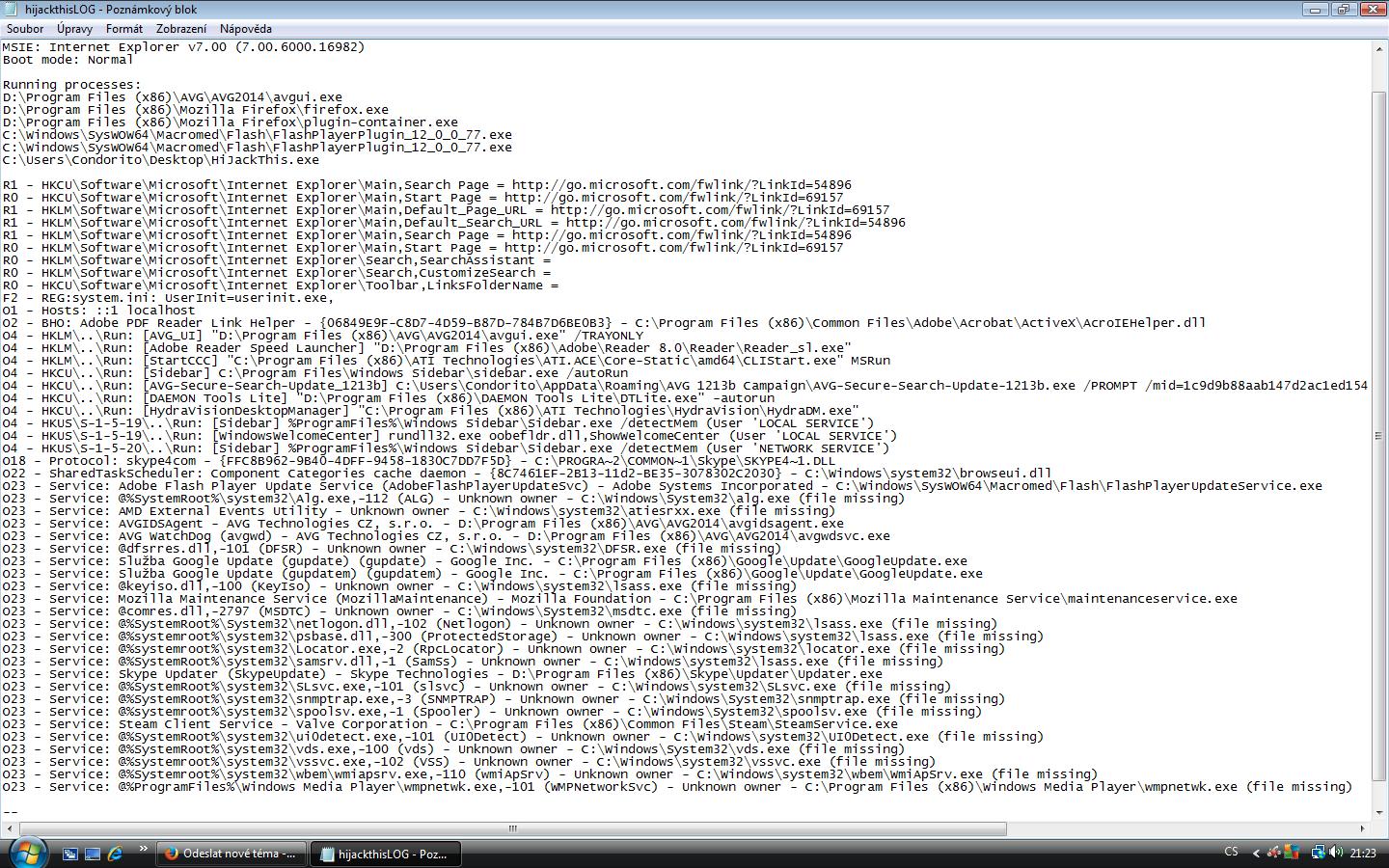 Při práci s programy HJT, ComboFix,MbAM, SDFix aj. zavřete všechny ostatní aplikace a prohlížeče!
