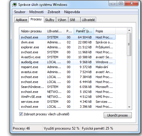 Když se podíváš do Správce úloh, tak které procesy ti nejvíce vytěžuje procesor?