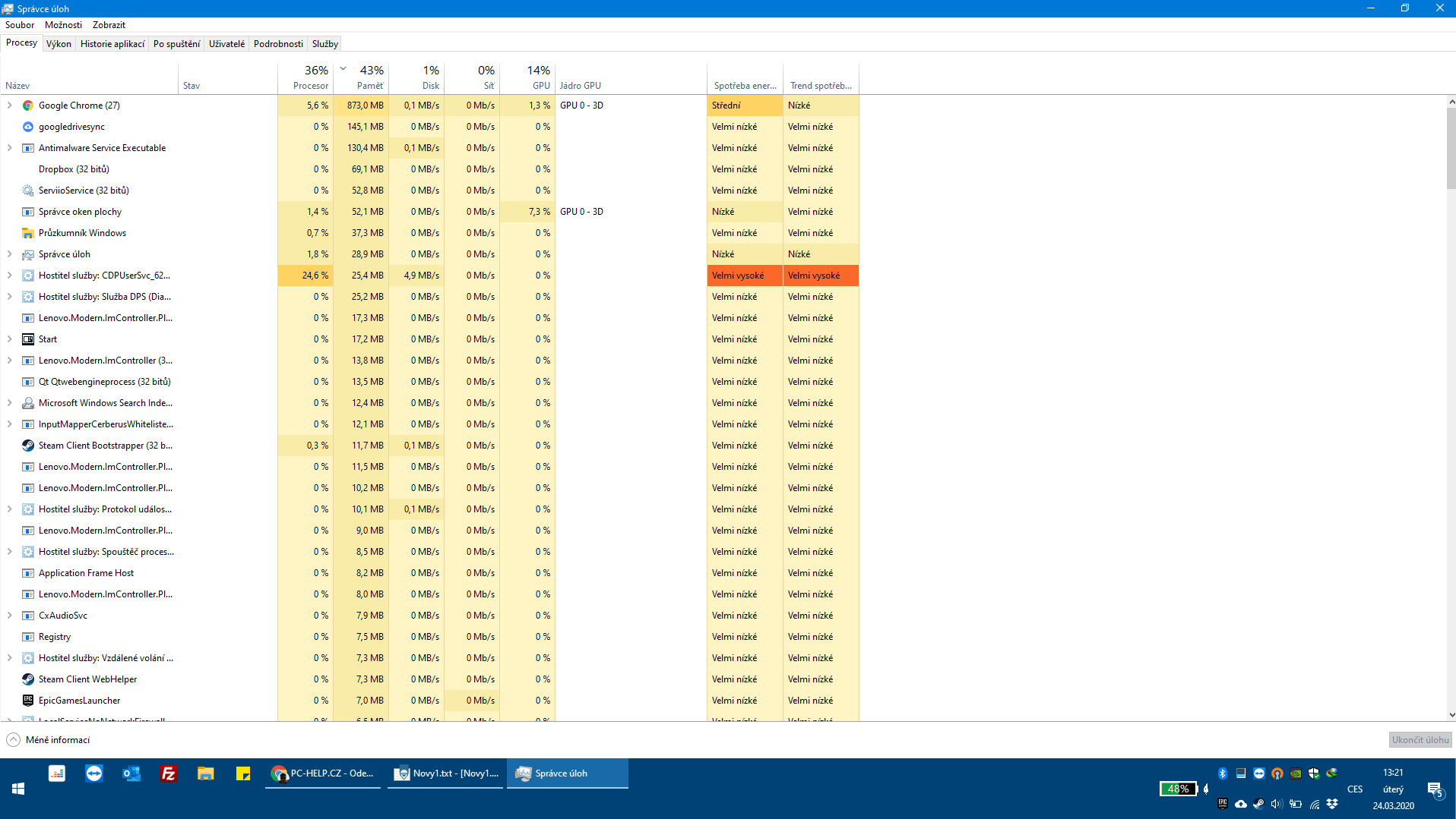 pozoruji menší výdrž baterie a hlasitější větrák i během jen prohlížení internetu, dříve nebylo. Asi se více vytěžuje procesor, prosím o rady. Navíc nechápu co tam dělá McAfee je odinstalováno.