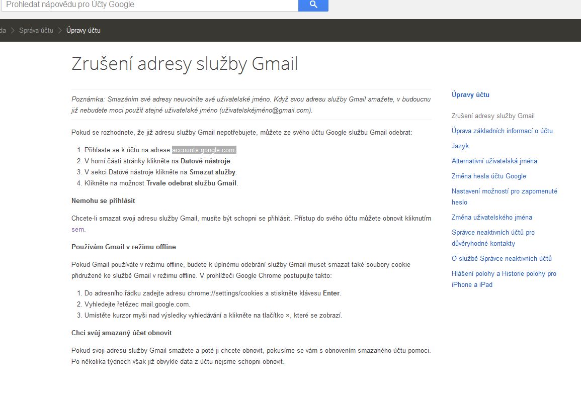Tak jak prosímtě múžu tu gmail adresu změnit nebo zrušit?