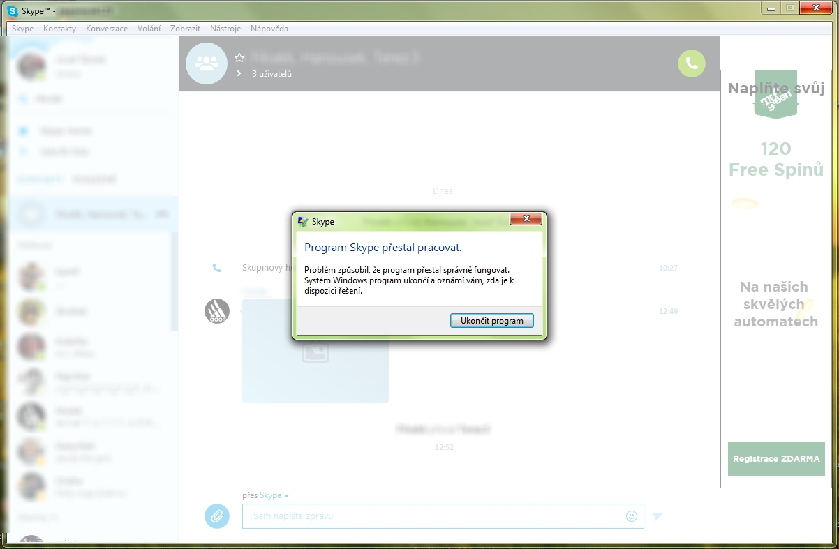 Čas spuštění chybující aplikace: 0xSkype.exe0