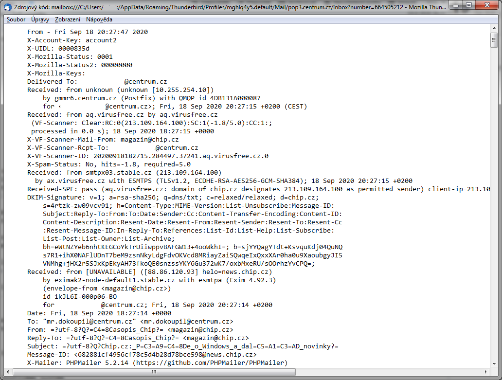 Potřebuji si ověřit, jestli více e-mailu chodí z jedné ip adresy