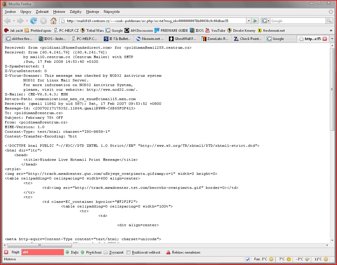 nicmene kratky pohled do hlavicky zpravy ukazuje ze je od uplne jine adresy.