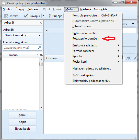 Posláno z gmailu na centrum. Kromě klasického potvrzení, které může adresát zakázat.