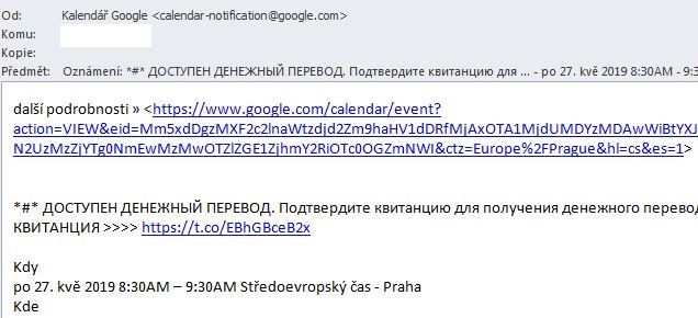obracím se na Vás s prosbou, opakovaně mi chodít do gmail emailu neexistující "schůzka" z nějakého ruského emailu (viz obrázek)