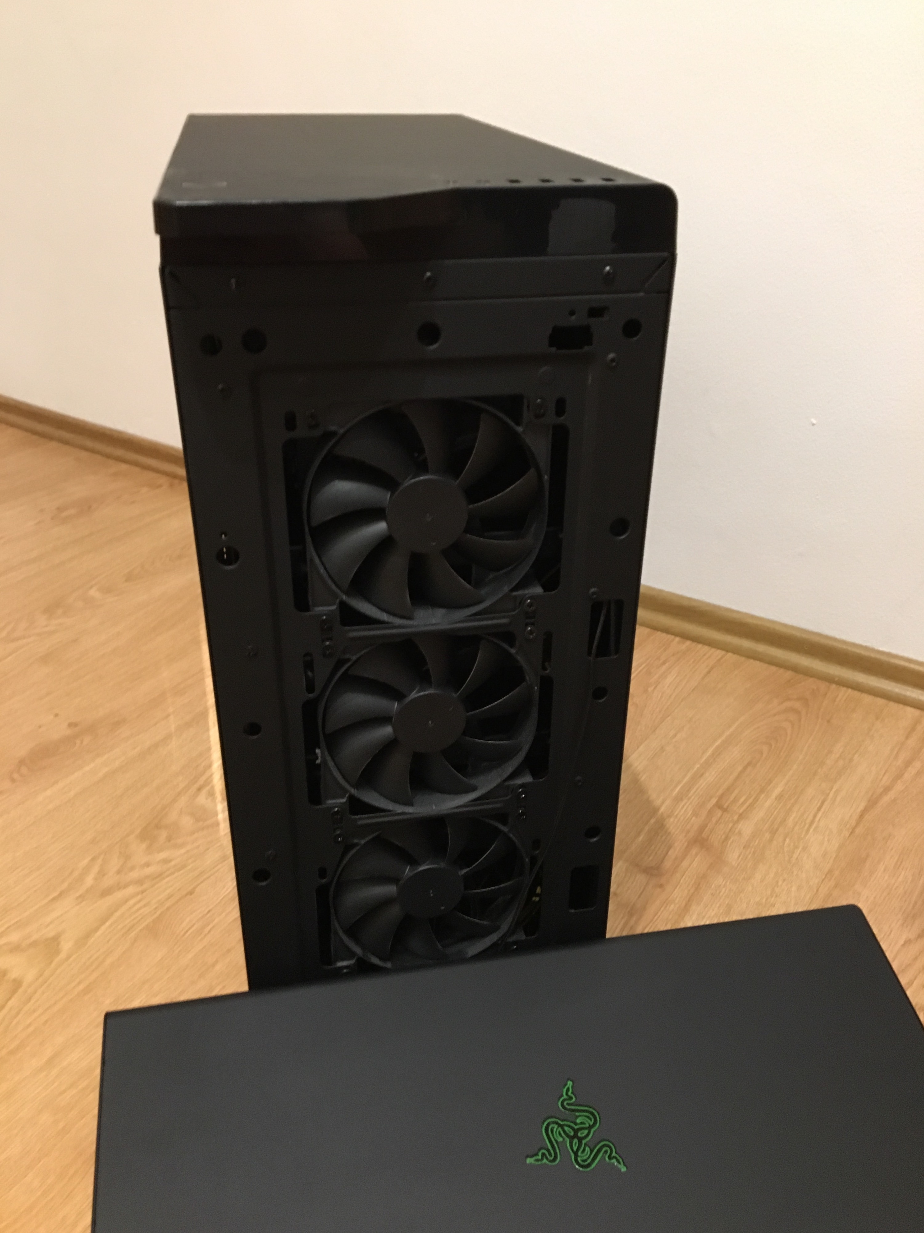 Nabízím k prodeji počítačovou skříň NZXT H440 Special Razer Edition.Stará půl roku.Kupováno na TS Bohemia (Přidám doklad).Aktuální cena 4 499,- Kč.Nejdou přepínat světelné diody - Při zapnutí PC se všechny rozsvítí a při vypnutí všechny zhasnou.Jinak bez poškození.Osobní odběr v okolí Valašského Meziříčí popřípadě na dobírku. Obecný popis: Materiál: SECC ocel, ABS plast Základní desky: ATX, m-ATX, ITX zdroj: Ne Standardní ATX PS2 zdroj Pozice: 0 x 5,25 "externí 11 x 3,5" interní 8 x 2,5 "interní Porty na předním panelu: 2 x USB 3.0 2 x USB 2.0 1 x výstupní konektor pro sluchátka 1 x vstupní konektor pro mikrofon Maximální délka VGA: 294mm, 428mm (bez HDD klece) Chlazení: Přední část: 3x 120mm nebo 2x 140mm ventilátor (3x 120mm FN V2 instalován) Horní část: 2x 140mm nebo 3x 120mm ventilátor Zadní část: 1x 140 / 120mm ventilátor (1x 140mm FN V2 instalován) Maximální výška CPU chladiče: 180 mm Rozměry: 220 x 513 x 475,3 mm Hmotnost: 9,75 kg