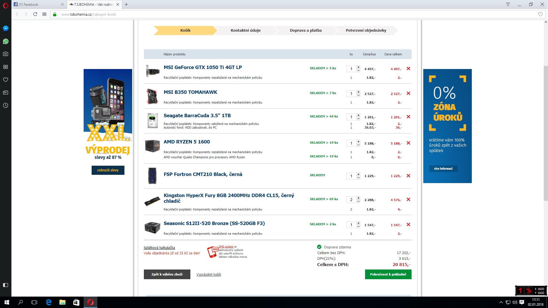 Obavam se ze to dneska slozis nove za mene nez 20 tisic, jen ten Ryzen 1600 samotny uz stoji jen 4000 Kc.