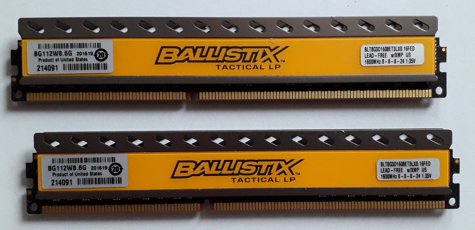 1) Crucial 16GB KIT DDR3 1600MHz CL8 Ballistix Tactical LP