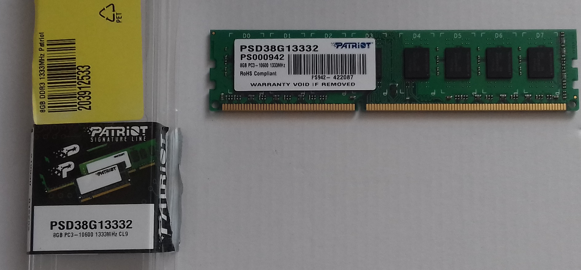 2) Patriot DDR3 8GB 1333MHz CL9 PSD38G13332