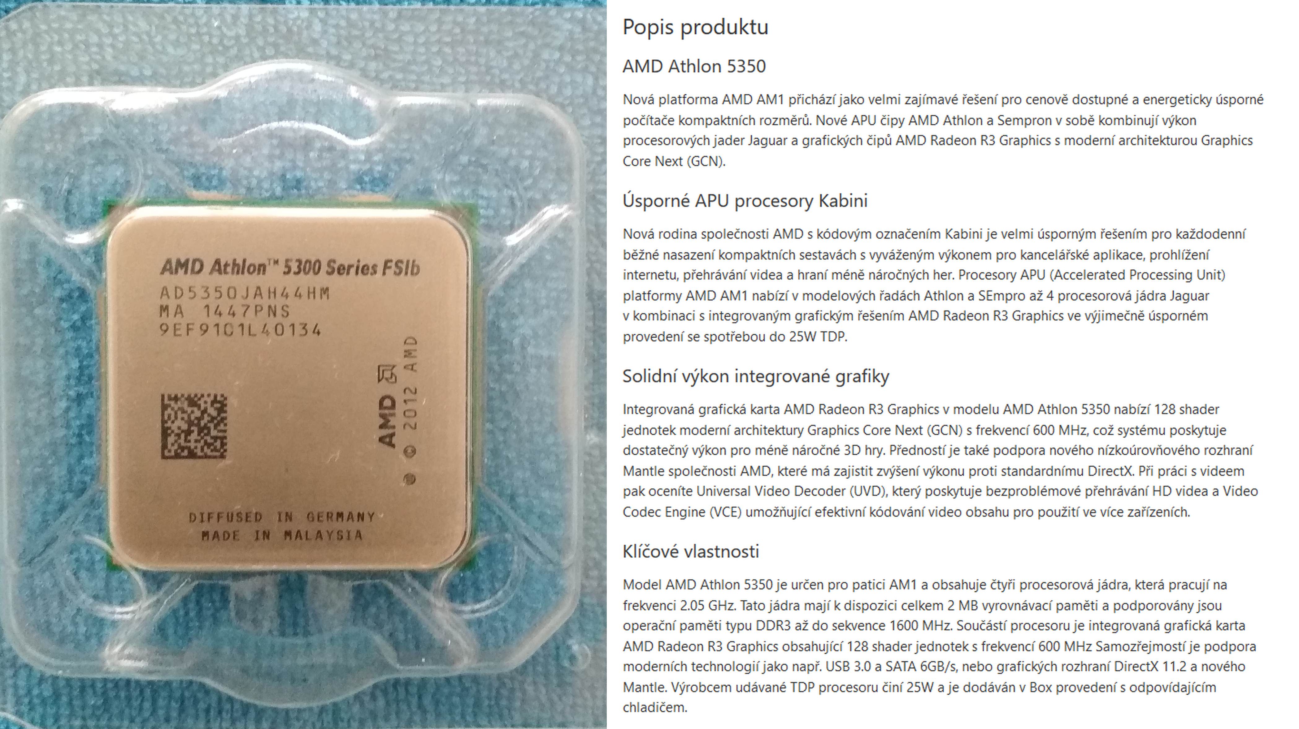 Re: Prodám CPU AMD Athlon 5350 AM1 2,05MHz, TDP 25W