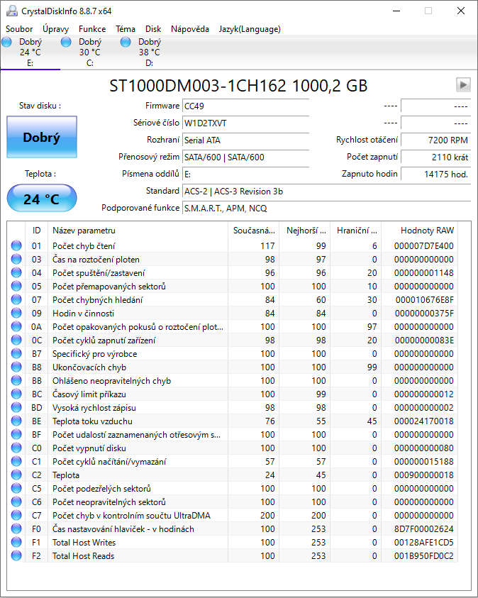 To mě nenapadlo, zítra ho zapojím a hodím to sem. :)sojkin626 píše:Myslím, že by bylo fajn sem hodit i S.M.A.R.T log.
