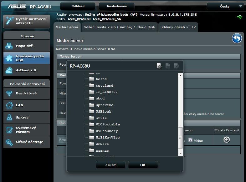 U DLNA si můžete vybrat, které adresáře budou nabízeny:
