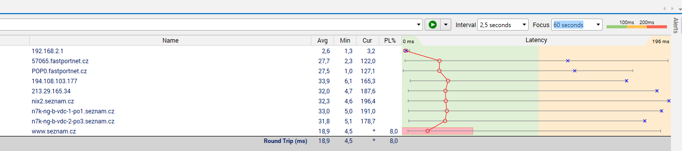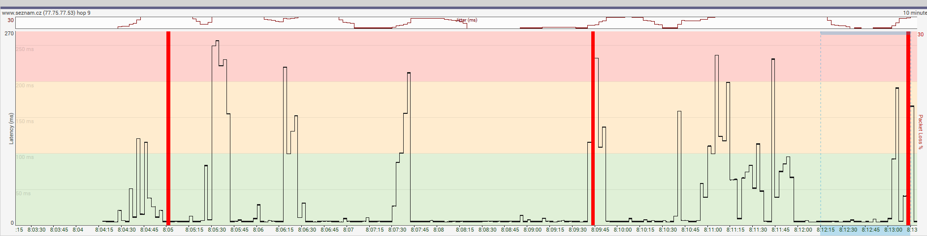 Tenhle výsledek je dost průkazný na to, aby bylo vidět, že k chybě dochází až za předávacím rozhraním poskytovatele. S velkou pravděpodobností je problém v poslední míli.