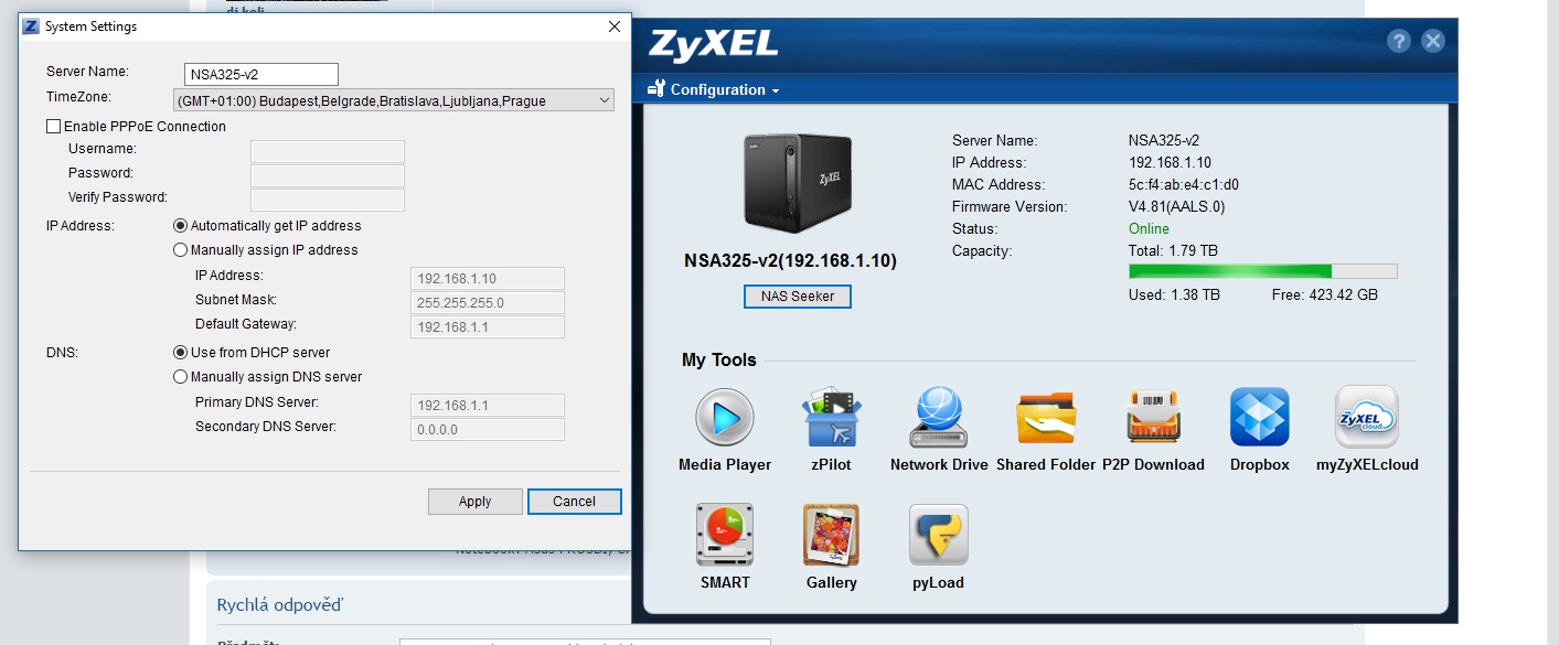 Původně jsem měl IP adresu 192.168.1.6, kterou jsem jak v routeru, tak v nasu upravil na 192.168.1.10. Ani toto nepomohlo. Nyní se mohu připojit k FTP a twonky serveru. Normálně mám namapované složky do stolního PC a v tuto chvíli na něj posílám fotky.