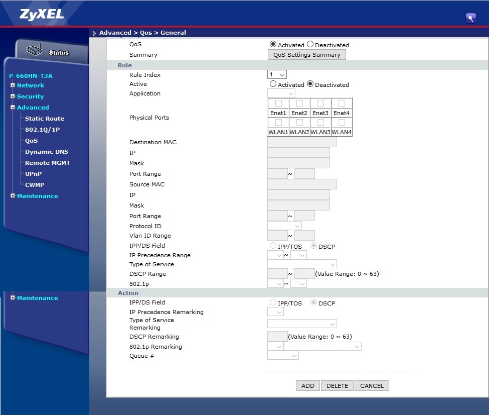 Mám wifi router zyxel P-660HN-T3A. Potřebuju omezit na jednom ntb co je připojen k bezdrátové síti internet. Bohužel ho nemužu odpojit uplně a ve chvíli kdy začne stahovat/uploadovat my ostatní co jsme na stejné síti si mužeme jít ven hrát na schovku. Hledal jsem plno návodů ale u tohoto typu routeru jsem z QoS docela zmatený a nevím co kde vyplnit. Poradí prosím někdo jak na to? Přikládám pohled do QoS.