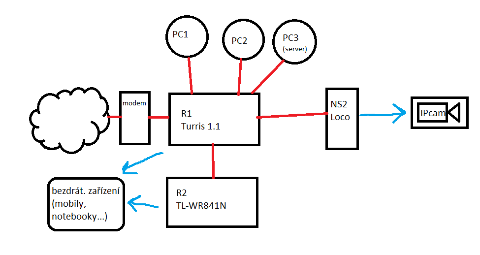 Počítač je ve stejném subnetu jako kamera. Co konkrétně potřebuješ vědět u routerů? Routery jsou spolu navzájem propojeny LAN-LAN. WR841N slouží pouze k rozšíření signálu, o nic víc se nestará.