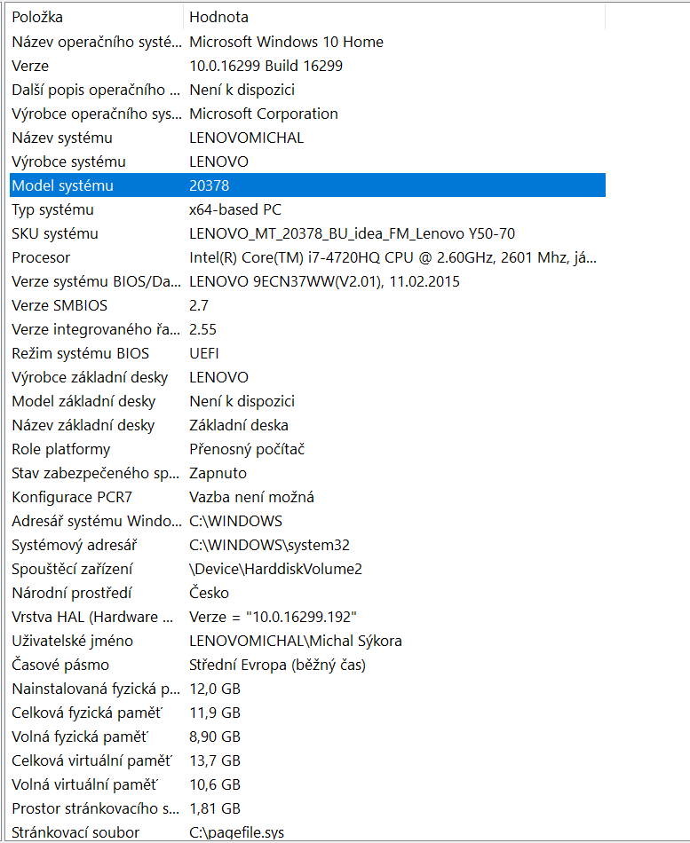 systém win 10 home - Microsoft Windows [Version 10.0.16299.192]