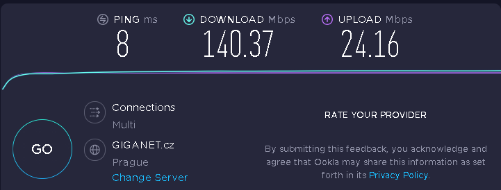 Ano rychlost jsem zkoušel měřím takovou kterou normálně. Sice to neni těch 250mb ale tohle měřím normálně. Neni to nic neobvyklého.