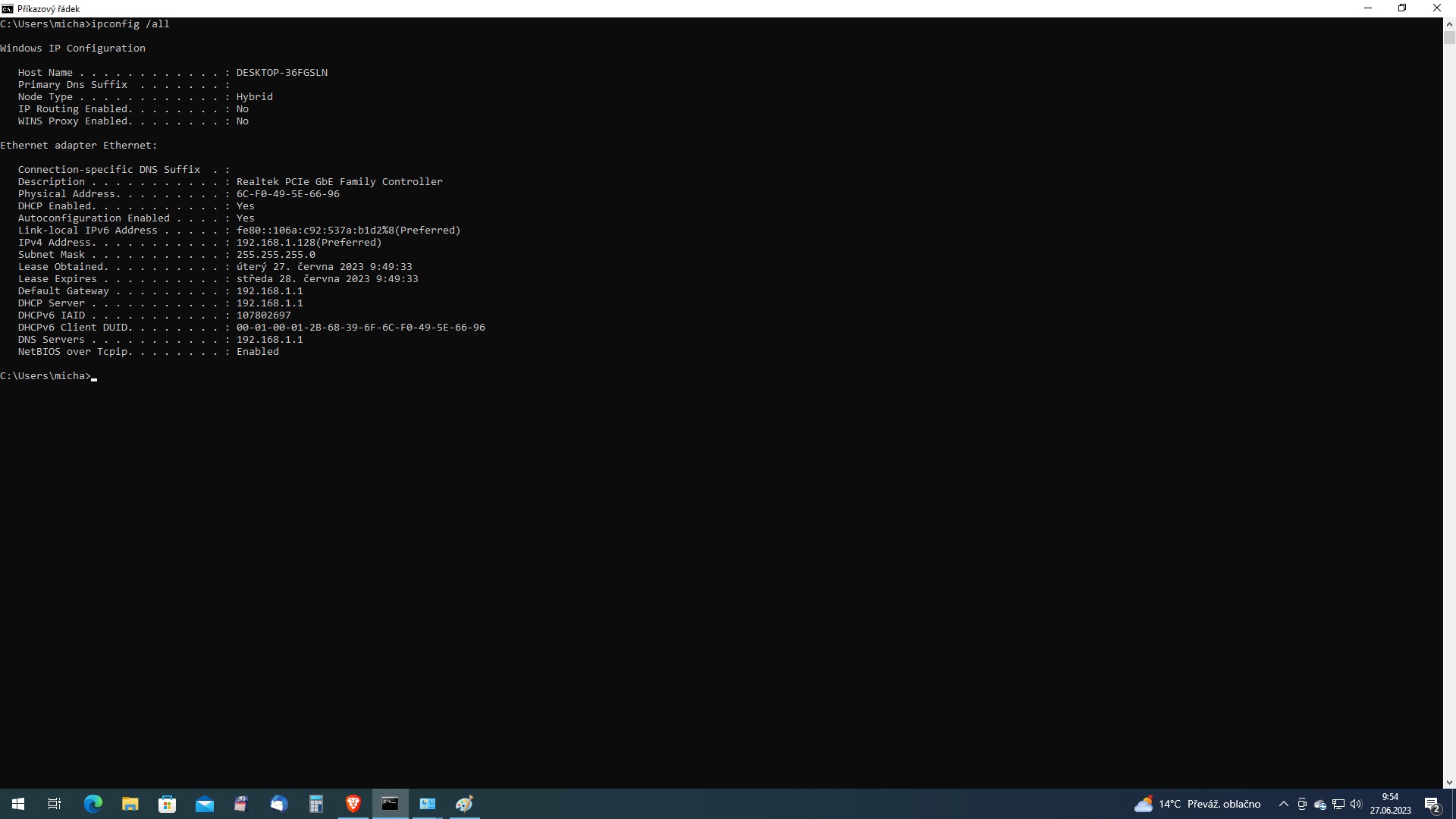 Spusť příkaz ncpa.cpl. Dej sem screen stavu síťového připojení. Dále dodej výpis ipconfig -all. A ping na router v případě výpadku.