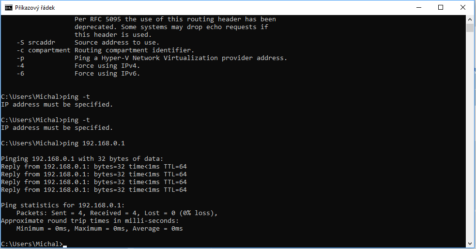 No nefunguje. Pokud mám starý router připojen k PC bez modemu, nefunguje mi internet.Tím pádem mi nevyskočí nic u toho příkazu s pingem.