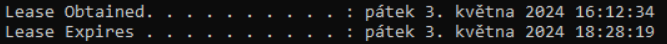 Mas tam zapujceni adresy jen na 2 hodiny, to neni standardni nastaveni, to nekdo musel nastavit rucne.