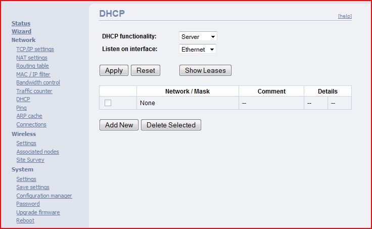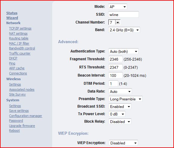 Tady to nech na disabled. Wifi nastavíš ve Wireless-Settings, a DHCP v Network-DHCP. To sem dej ale asi radši screen. A ještě jeden ze Status
